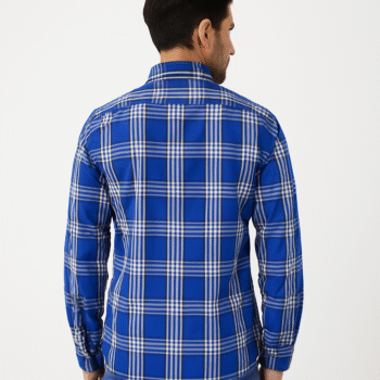 ₹599.00Original price was: ₹599.00.₹499.00Current price is: ₹499.00.Select optionsNavy blue & beige checkered shirt with dual chest pockets — stylish and functional.