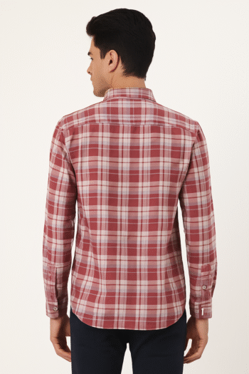 Men’s Maroon & White Checked Casual Shirt
