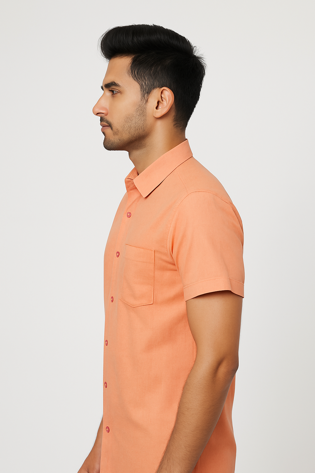Men’s Solid Orange Cotton Casual Short Sleeve Shirt