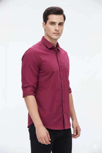 Men’s Maroon Solid Slim Fit Cotton Casual Shirt