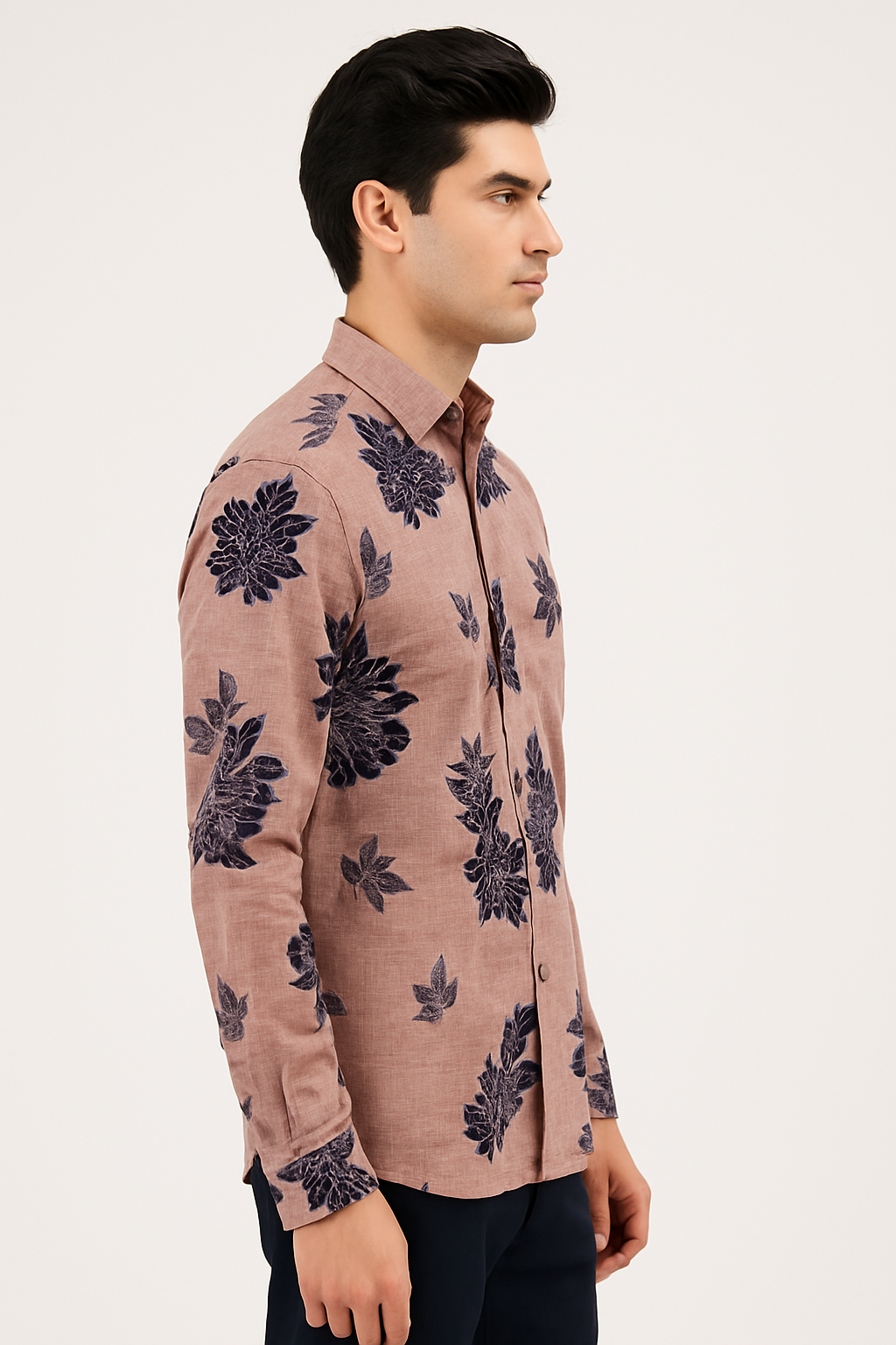 ₹599.00Original price was: ₹599.00.₹499.00Current price is: ₹499.00.Select optionsA stylish pink casual shirt featuring bold navy floral prints, crafted from a soft cotton-blend fabric. Designed with full sleeves, a classic collar, and a comfortable tailored fit—perfect for smart-casual outings and everyday wear.
