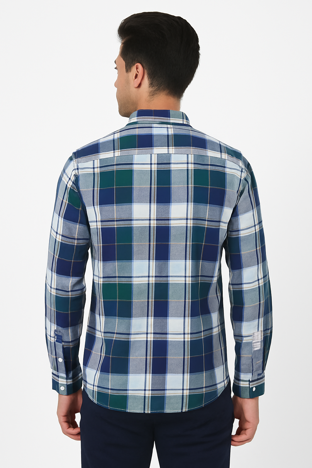 ₹599.00Original price was: ₹599.00.₹499.00Current price is: ₹499.00.Select optionsNavy blue tartan checked shirt with multicolor stripes, perfect for casual and smart-casual wear.