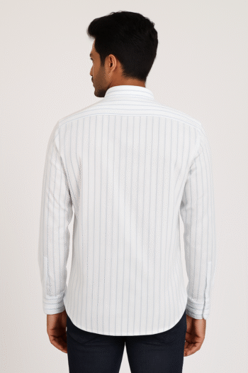 ₹599.00Original price was: ₹599.00.₹499.00Current price is: ₹499.00.Select optionsA smart white long sleeve shirt with subtle sky blue stripes — ideal for office or casual sophistication.