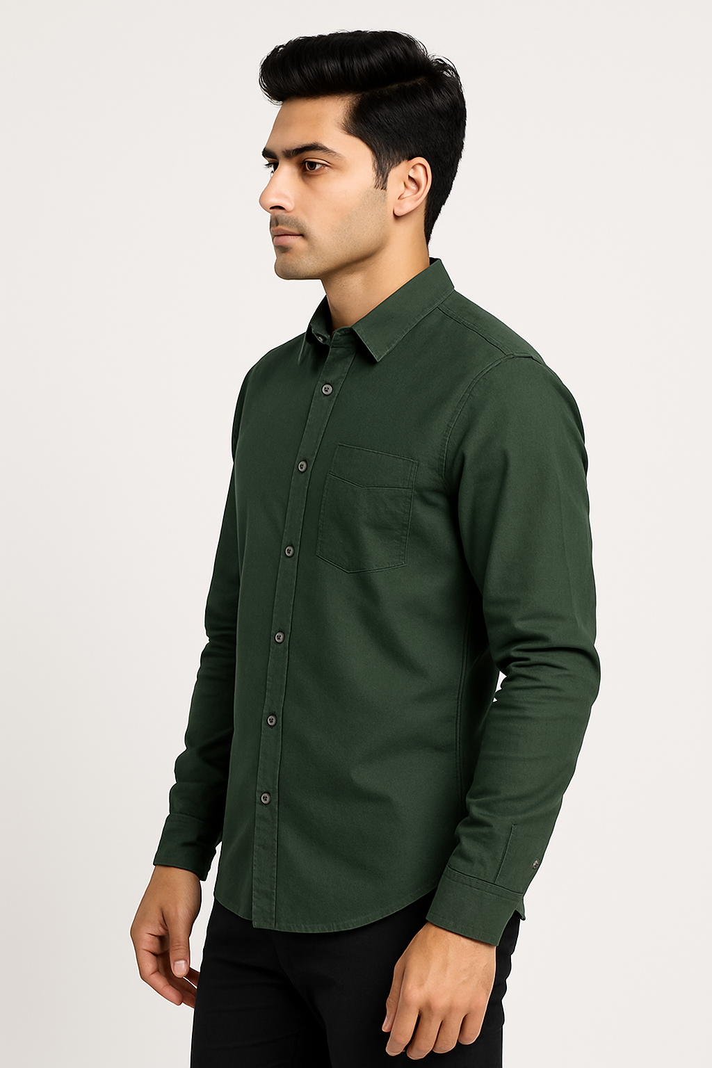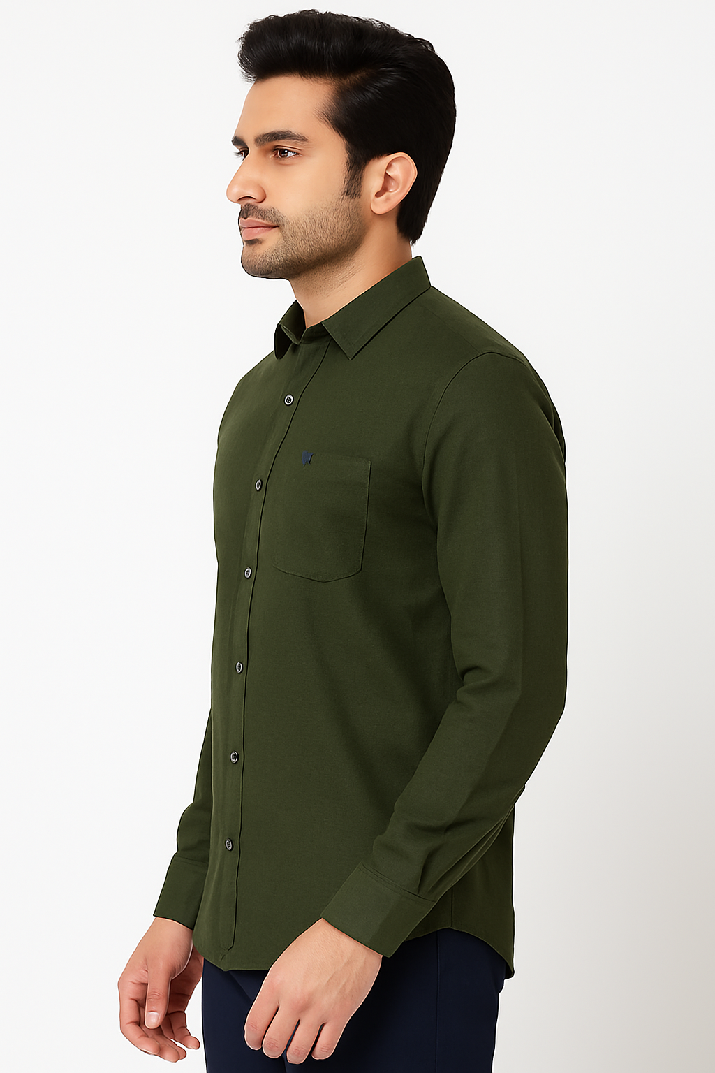Men’s Solid Olive Green Slim Fit Cotton Shirt – Full Sleeves | Casual & Smart Wear