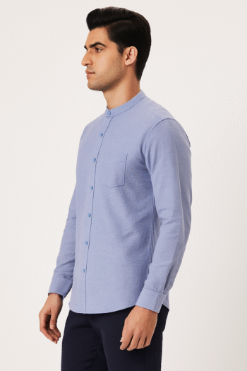 Light Sky Blue Textured Slim Fit Cotton Shirt for Men