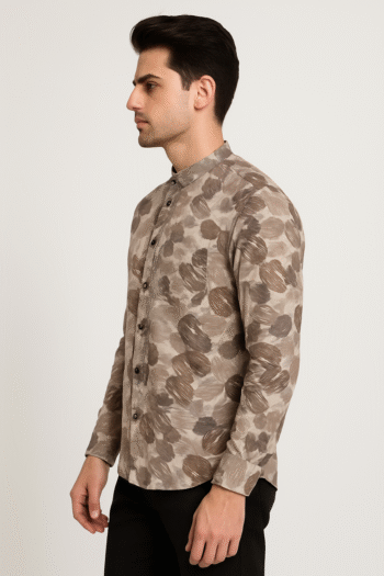 Men’s Brown Abstract Printed Mandarin Collar Shirt