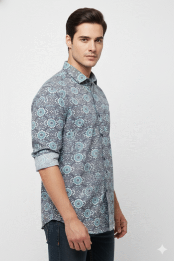 ₹599.00Original price was: ₹599.00.₹499.00Current price is: ₹499.00.Select optionsA trendy blue geometric floral printed cotton shirt designed for comfort and style — perfect for both casual and semi-formal occasions.