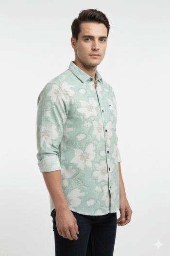 Men’s Slim Fit Mint Green Floral Printed Cotton Shirt