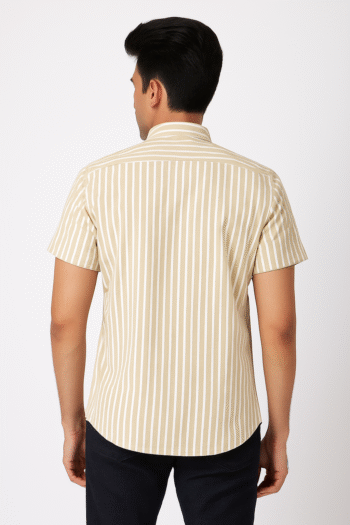 ₹599.00Original price was: ₹599.00.₹499.00Current price is: ₹499.00.Select optionsA classy beige short sleeve shirt with white vertical stripes, offering a clean and refined look for casual and semi-formal wear.