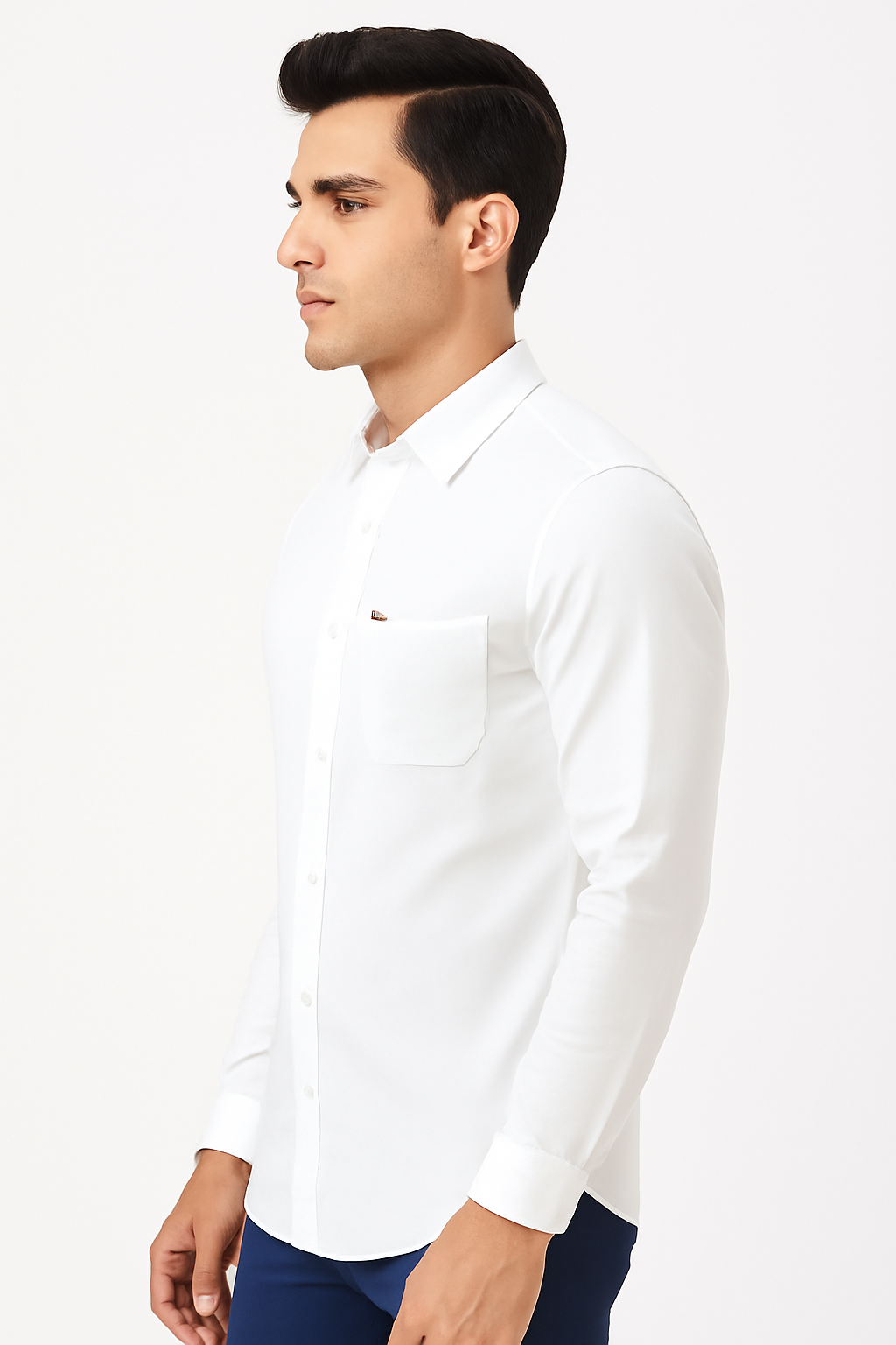 Men’s Classic White Slim-Fit Casual Shirt with Chest Pocket