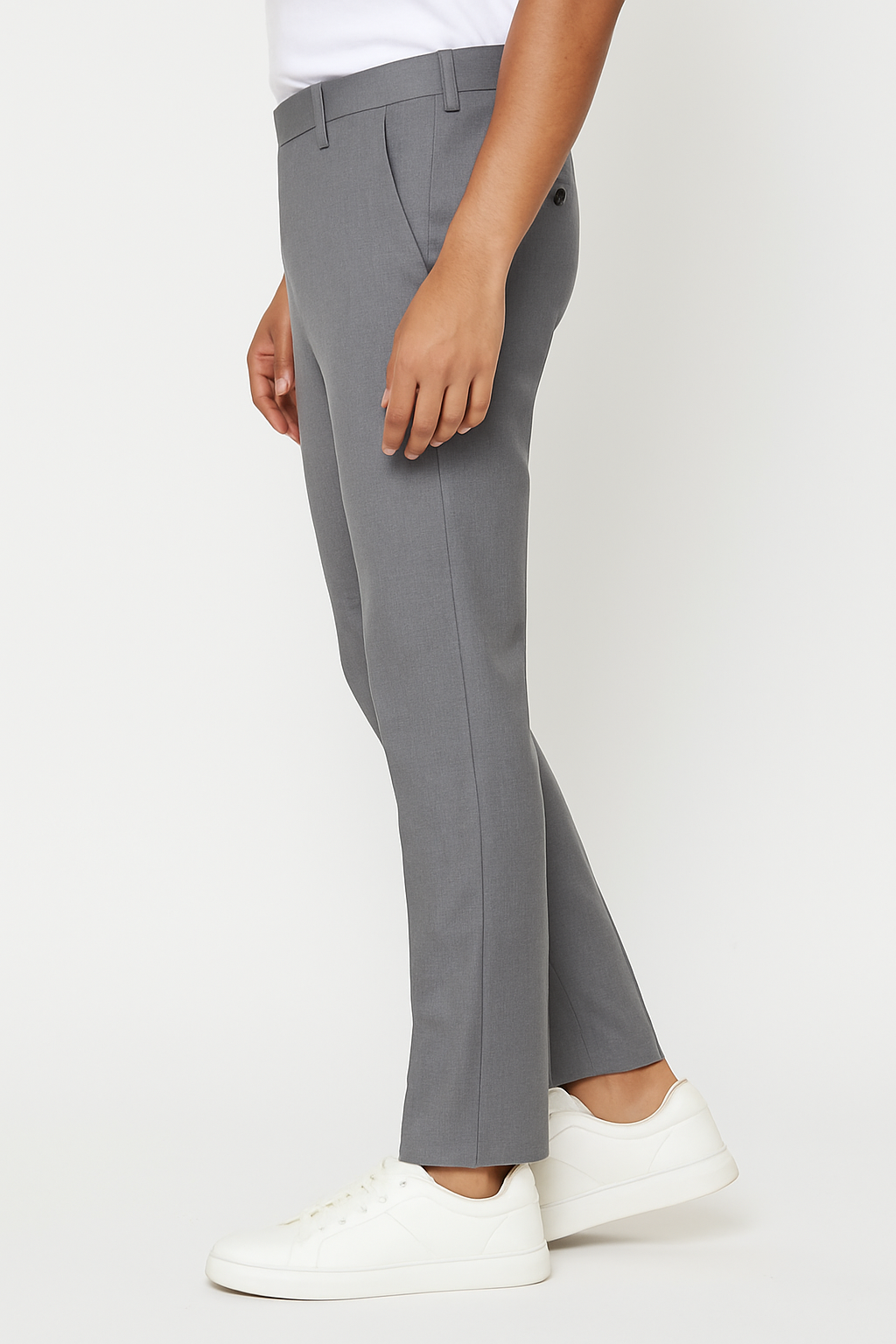 ₹799.00Original price was: ₹799.00.₹699.00Current price is: ₹699.00.Select optionsLight grey slim-fit formal trousers designed with a smooth flat front, tailored structure, and a clean modern silhouette suitable for office or formal wear.
