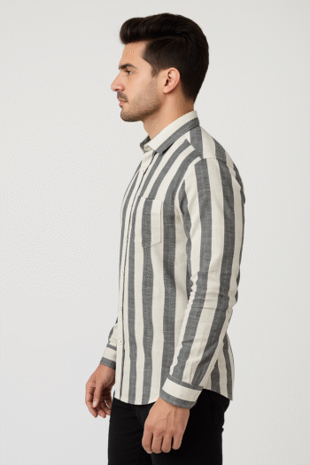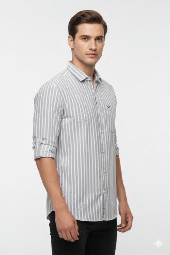 ₹599.00Original price was: ₹599.00.₹499.00Current price is: ₹499.00.Select optionsA refined grey and white striped cotton shirt that combines timeless design with modern comfort — ideal for casual Fridays, weekend outings, or smart-casual events.