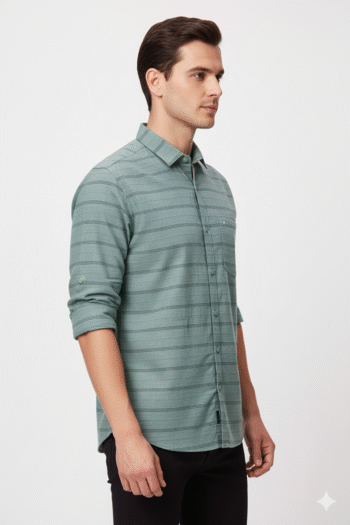 ₹599.00Original price was: ₹599.00.₹499.00Current price is: ₹499.00.Select optionsA sophisticated green striped cotton shirt with a subtle textured pattern. Lightweight, breathable, and perfect for casual or semi-formal occasions.