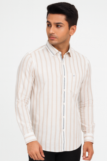Men’s Cream & Beige Striped Long Sleeve Shirt
