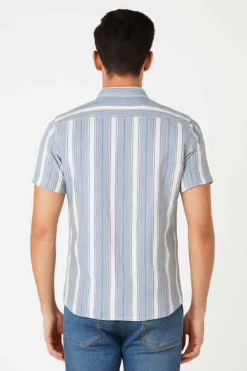 ₹599.00Original price was: ₹599.00.₹499.00Current price is: ₹499.00.Select optionsA casual blue short-sleeve shirt with vertical white stripes — lightweight, breathable, and effortlessly smart.
