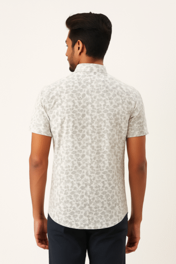 ₹599.00Original price was: ₹599.00.₹499.00Current price is: ₹499.00.Select optionsA fresh white short sleeve shirt with subtle grey floral prints, blending sophistication with casual charm.