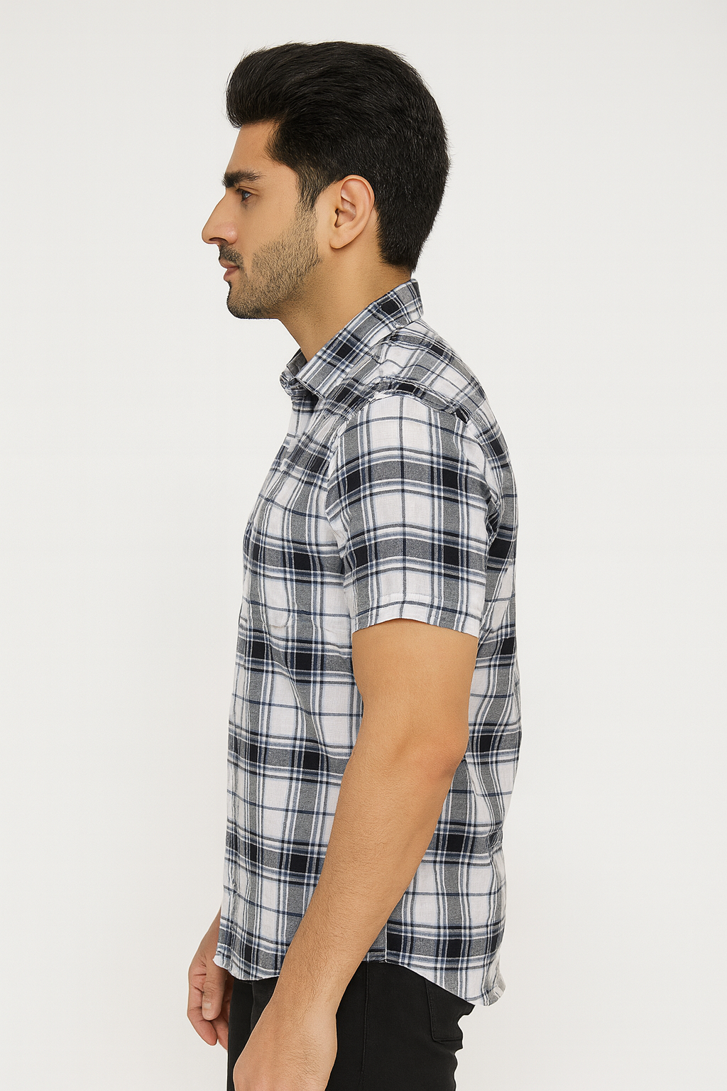 ₹599.00Original price was: ₹599.00.₹499.00Current price is: ₹499.00.Select optionsA crisp white shirt with classic black and grey checks — perfect for timeless everyday style and comfort.