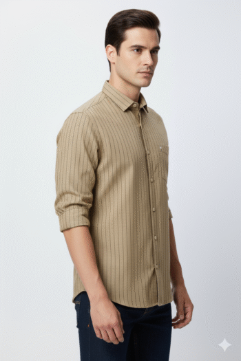 ₹599.00Original price was: ₹599.00.₹499.00Current price is: ₹499.00.Select optionsA refined beige cotton shirt featuring subtle vertical stripes and a soft textured finish — perfect for smart-casual style.