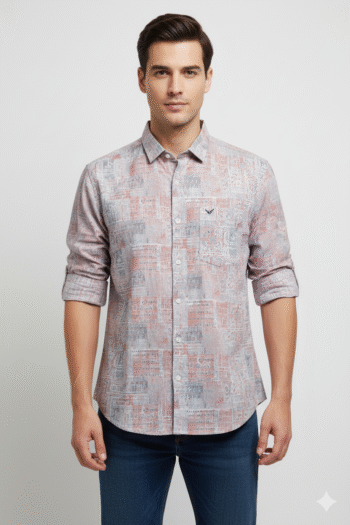 Men’s Printed Casual Cotton Shirt in Rust and Grey Tones