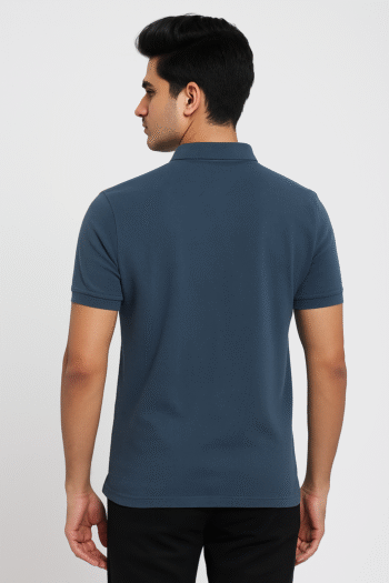 Men’s Blue Textured Polo T-Shirt with Contrast Collar Trim