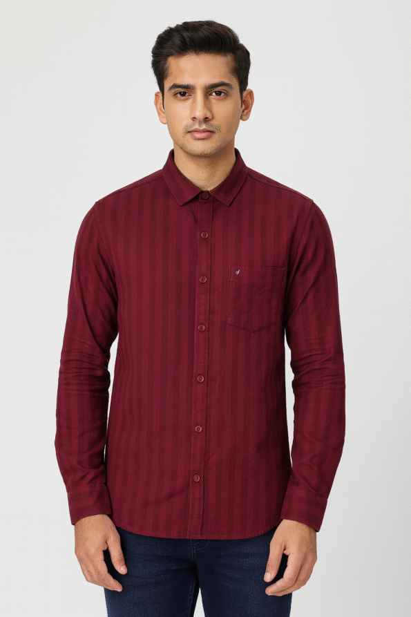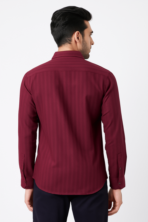 Maroon slim fit shirt with subtle vertical stripes — ideal for smart casual and semi-formal occasions.