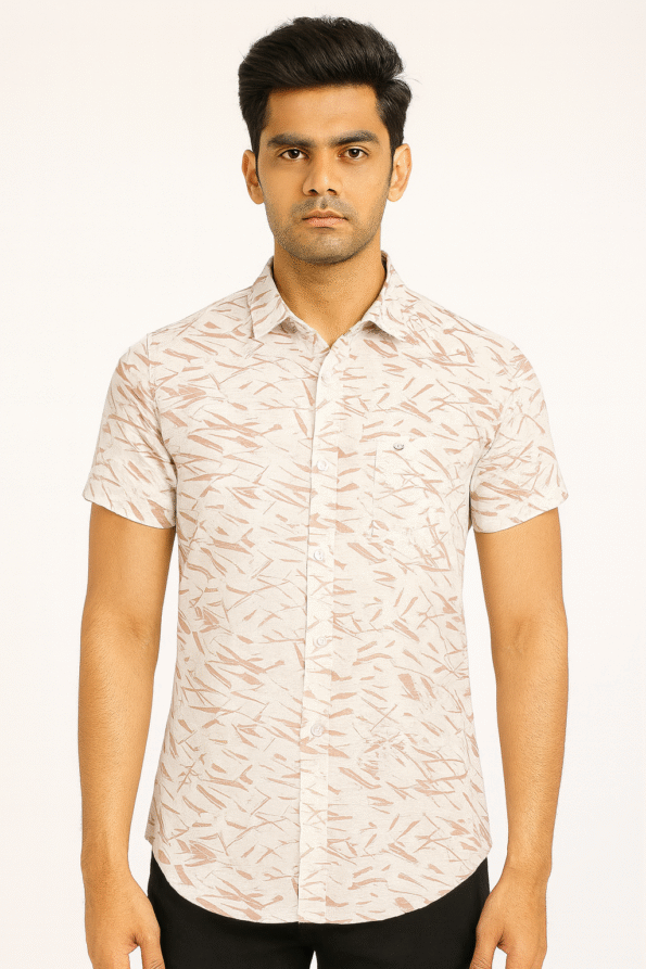 A contemporary beige abstract shirt — relaxed, refined, and effortlessly stylish for everyday wear.