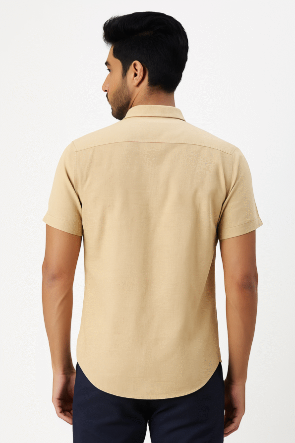Step into effortless style with this beige short sleeve cotton shirt, designed for versatility and comfort. The neutral beige tone makes it easy to pair with jeans, chinos, or formal trousers, while the tailored fit ensures a smart and polished look. Lightweight and breathable, this shirt is ideal for everyday office wear, travel, or casual gatherings.