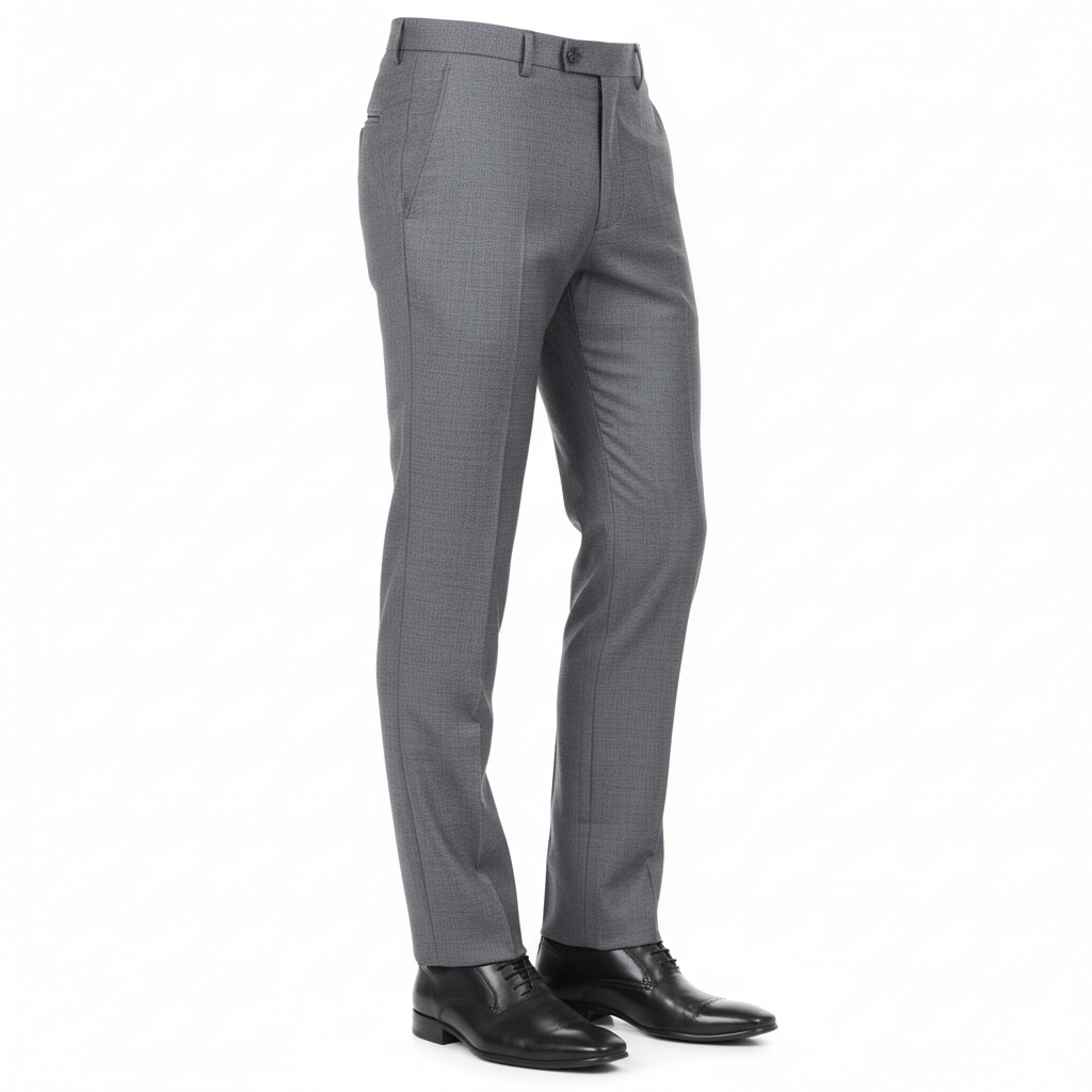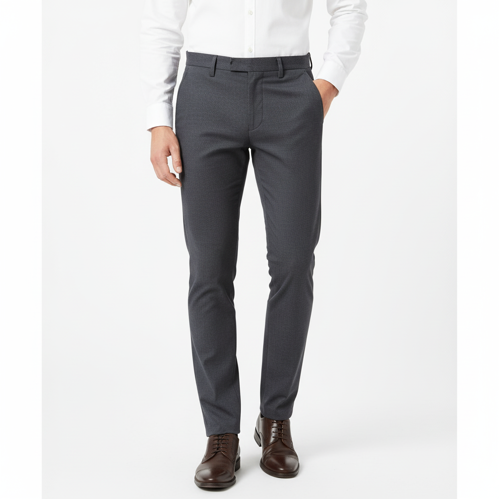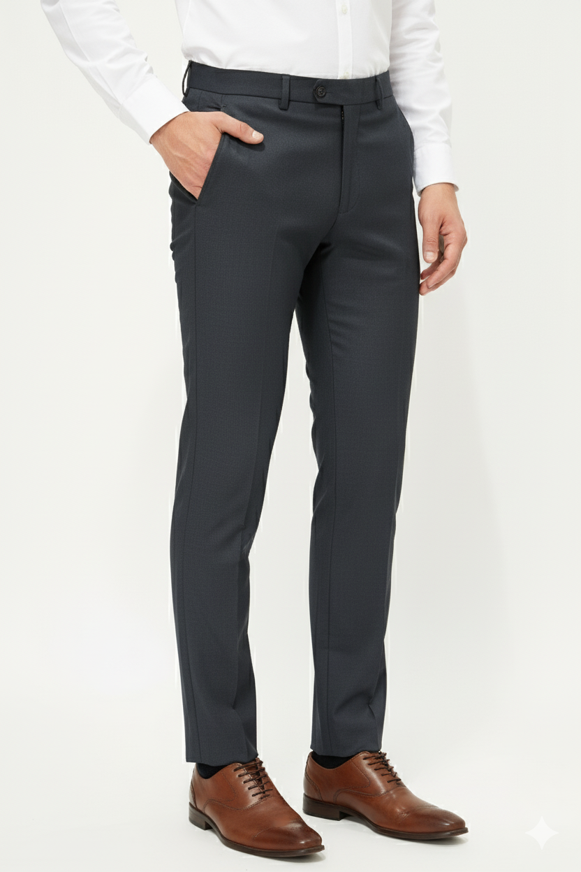 Refined steel grey slim-fit trousers crafted for all-day comfort and polished sophistication — a modern essential for formal occasions and business wear.