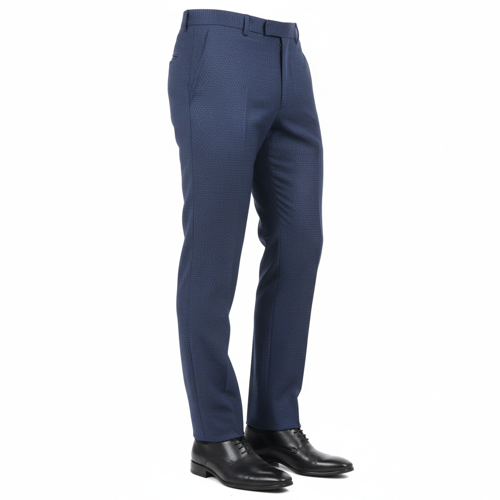 Elegant midnight blue slim-fit trousers with a subtle micro-texture — the perfect fusion of sophistication and comfort for the modern professional.
