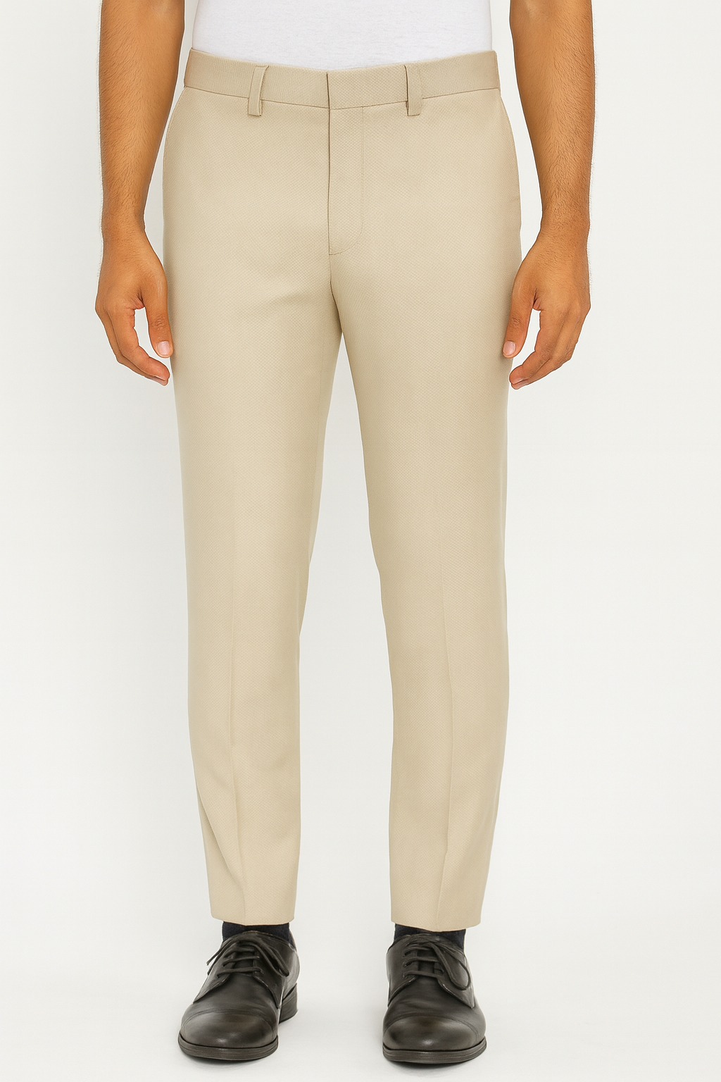 Refined beige trousers — slim fit with subtle textured weave, perfect for summer formals and business casual looks.