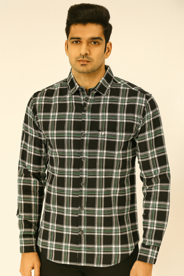 Classic black and green checked shirt for men — perfect blend of casual comfort and timeless style.