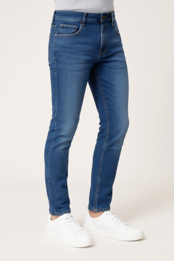 Blue slim-fit jeans with a clean finish and versatile modern style.