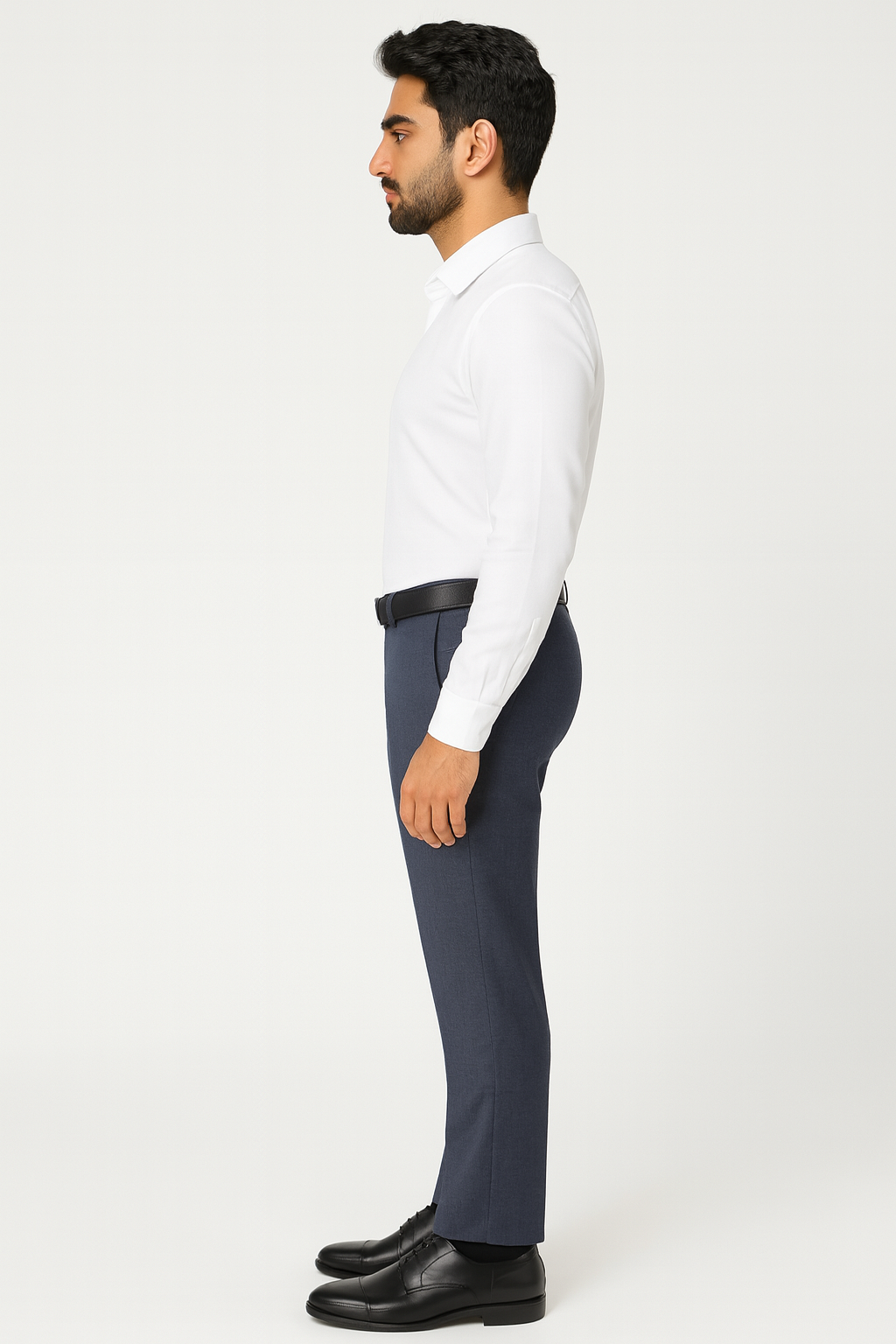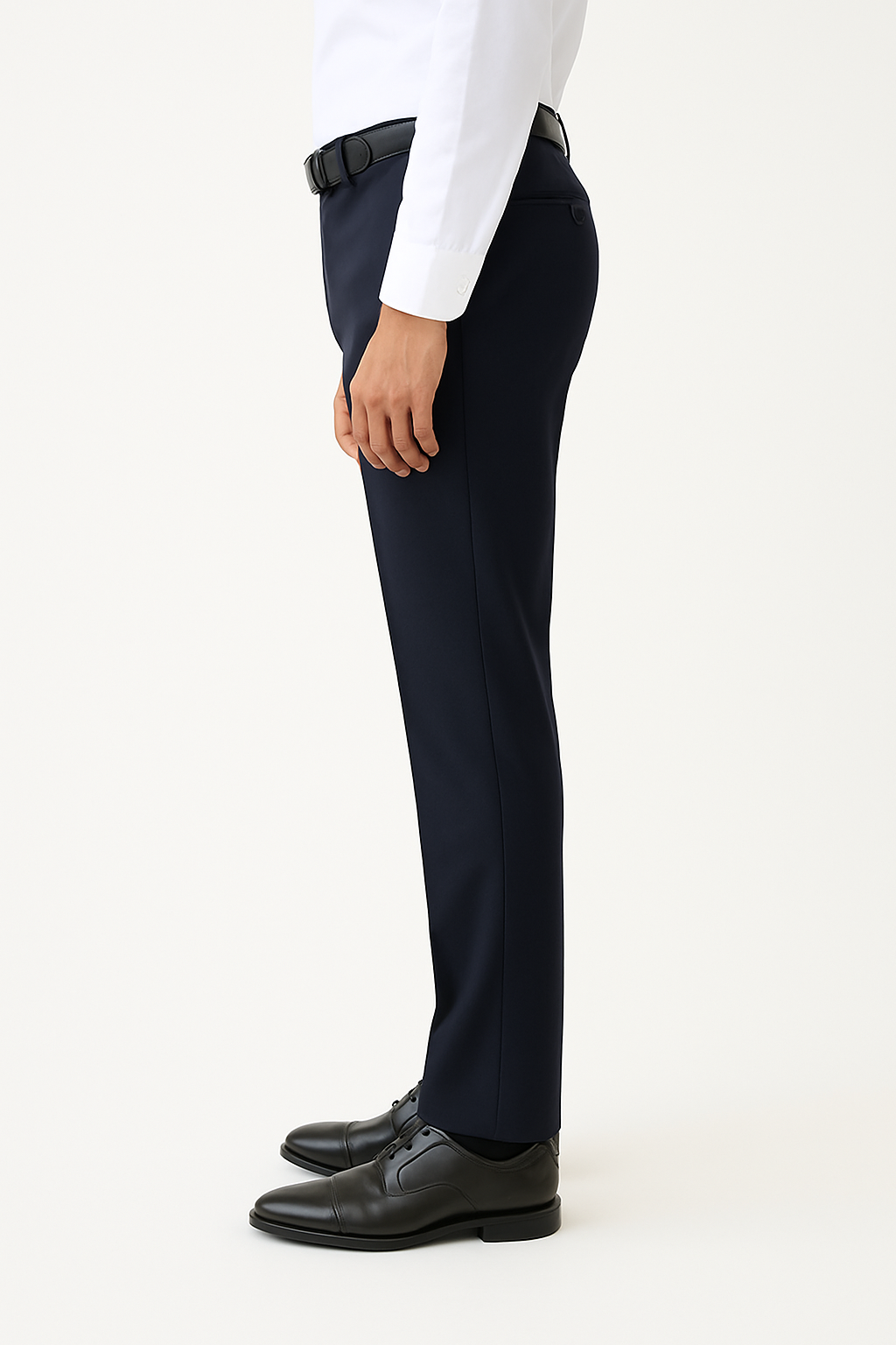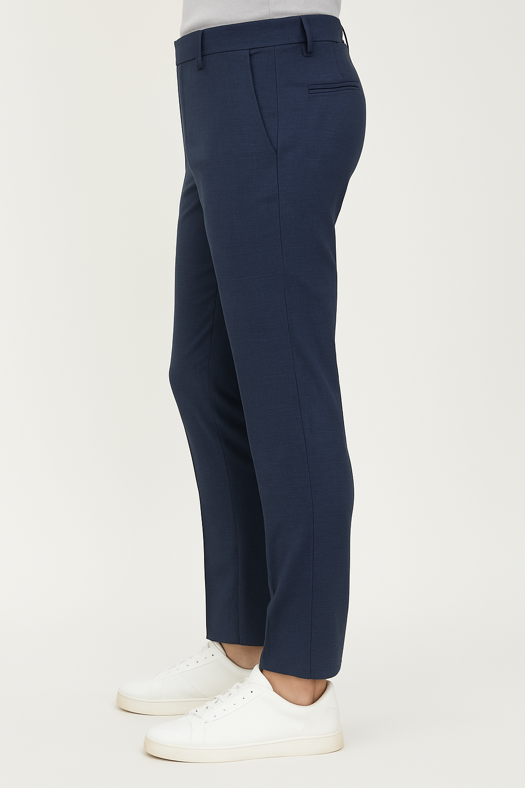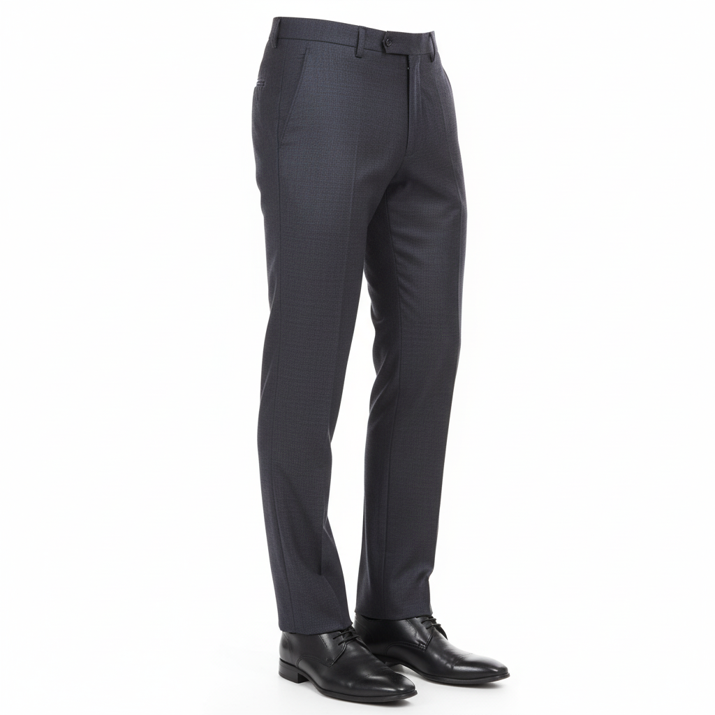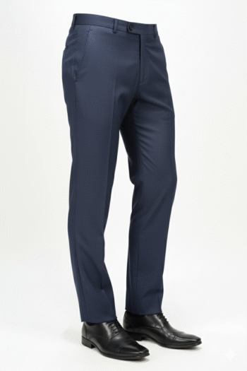Elegant midnight blue slim-fit trousers with a subtle micro-texture — the perfect fusion of sophistication and comfort for the modern professional.