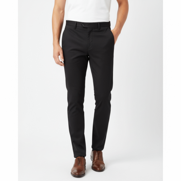 Refined and versatile, these Men’s Black Slim-Fit Stretch Formal Trousers are an essential piece for every modern wardrobe. Crafted with precision, they feature a tailored slim fit that enhances your silhouette while providing flexibility and comfort. The stretch poly-viscose fabric ensures easy movement and wrinkle resistance, making them ideal for both office wear and evening events. Their minimalist design complements any outfit, making them the go-to pair for business meetings, interviews, and formal gatherings.