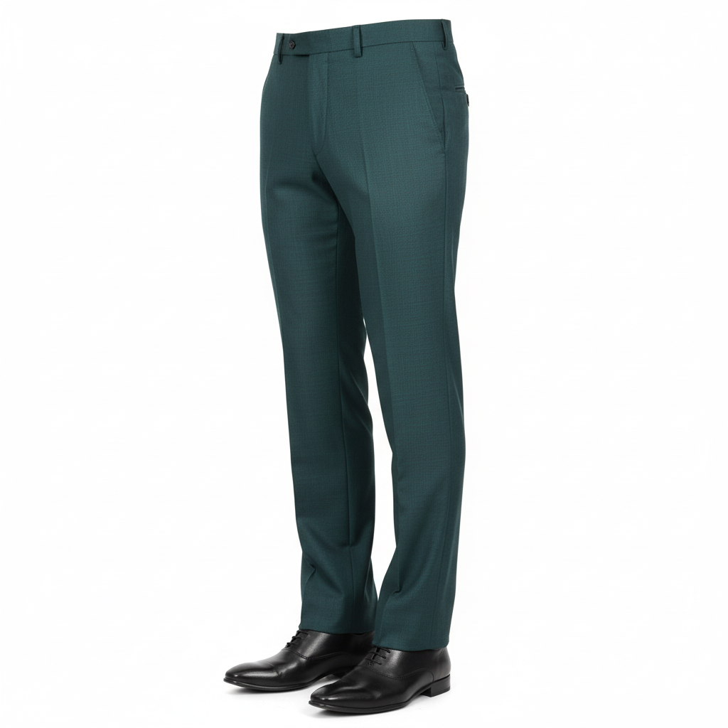 Distinctive bottle green slim-fit trousers crafted for the modern gentleman — perfect for adding subtle color sophistication to your formal wardrobe.