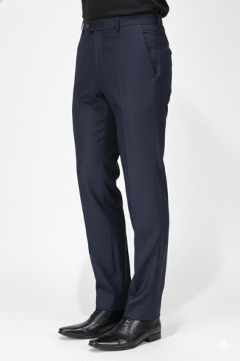 Tailored navy blue formal trousers with a slim silhouette — the perfect choice for office wear or formal occasions.
