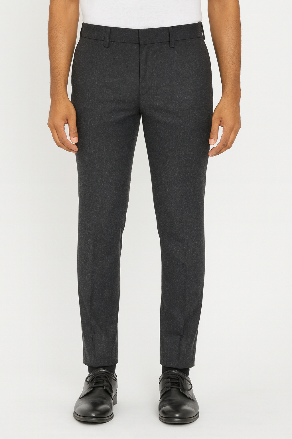 Classic charcoal textured trousers — sleek slim fit with subtle weave for a premium, modern office look.
