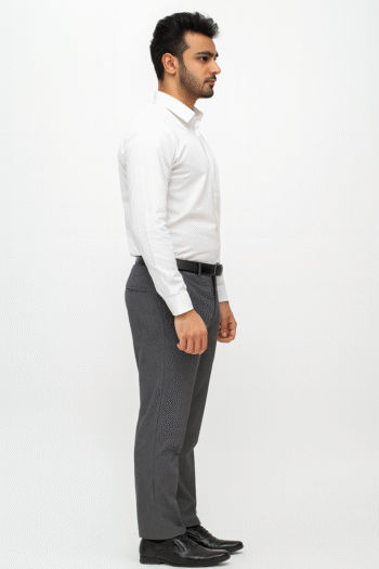 Refined steel grey slim-fit trousers crafted for all-day comfort and polished sophistication — a modern essential for formal occasions and business wear.