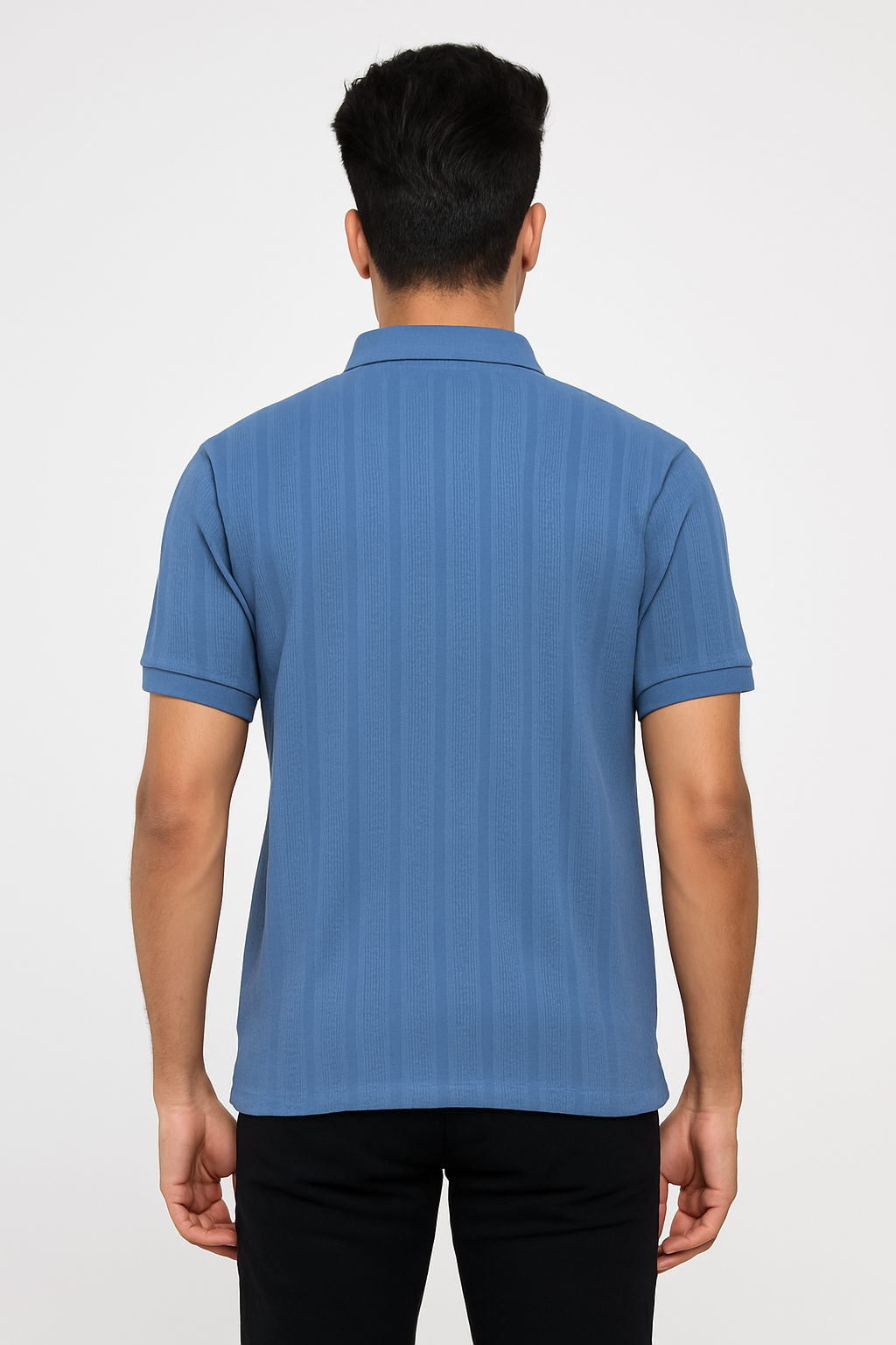 A modern grey Henley polo with a sleek mandarin collar and three-button placket. Made from smooth, soft-stretch fabric for all-day comfort, it features subtle chest branding and navy-tipped sleeves. A clean, versatile piece that pairs easily with jeans or chinos for smart-casual wear