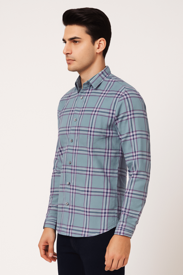 This checked casual shirt combines green and purple tones in a bold yet balanced design. Featuring full sleeves, a button-down front, and a classic collar, it offers both comfort and a polished casual look. Ideal for pairing with jeans or chinos for versatile everyday wear.