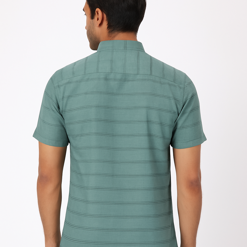 Be the first to review “Men’s Green Textured Striped Casual Shirt”