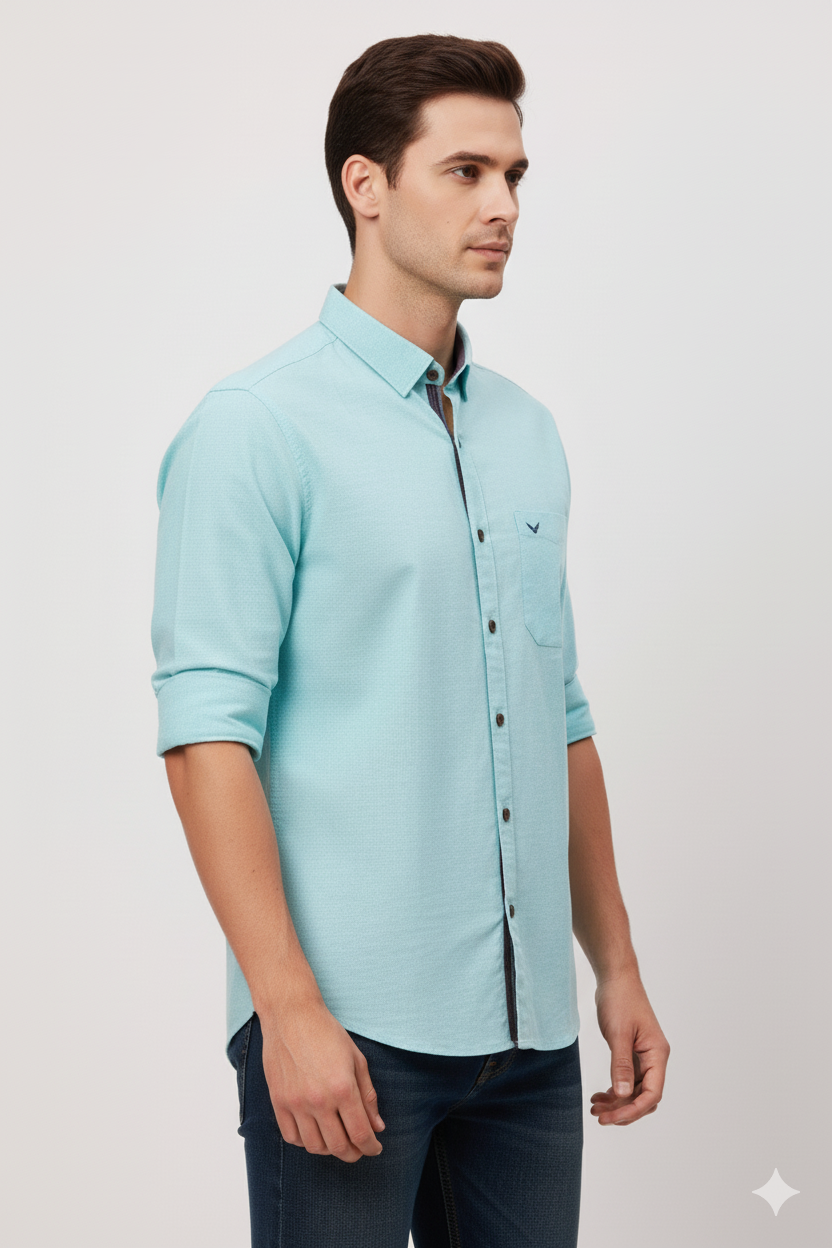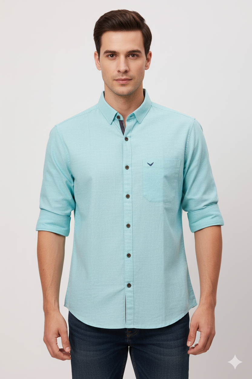 Refresh your wardrobe with this light aqua blue cotton shirt — a breezy, modern essential for both casual and semi-formal wear.