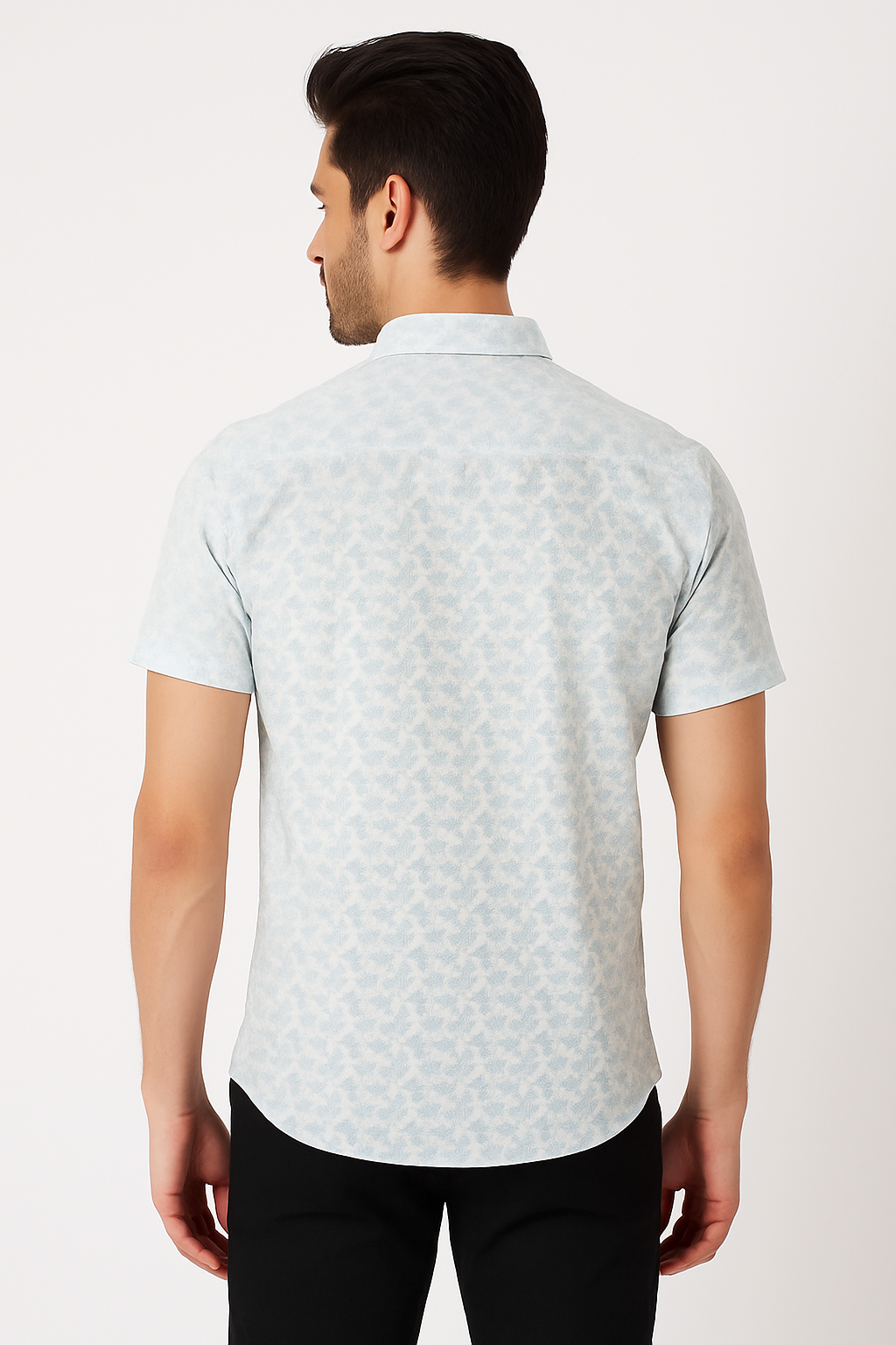 Give your everyday wardrobe a fresh update with this light blue printed shirt. Crafted from soft, breathable cotton, it features a subtle all-over print that adds personality without overwhelming your look. The short sleeves, spread collar, and curved hem make it ideal for casual outings or weekend wear. Whether paired with chinos or jeans, this shirt delivers effortless style and comfort.