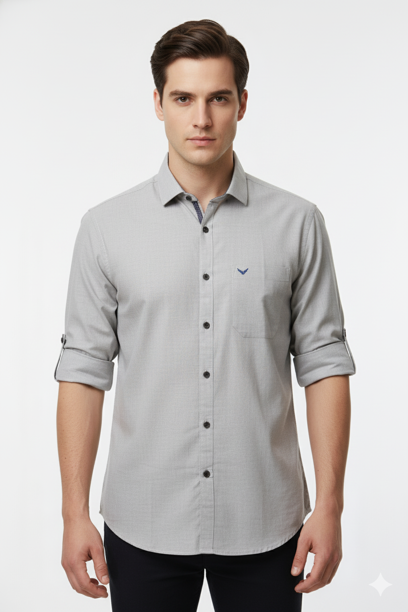 A sleek light grey cotton shirt offering a perfect balance of simplicity and sophistication — ideal for office, casual, or semi-formal wear.