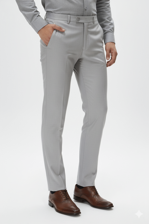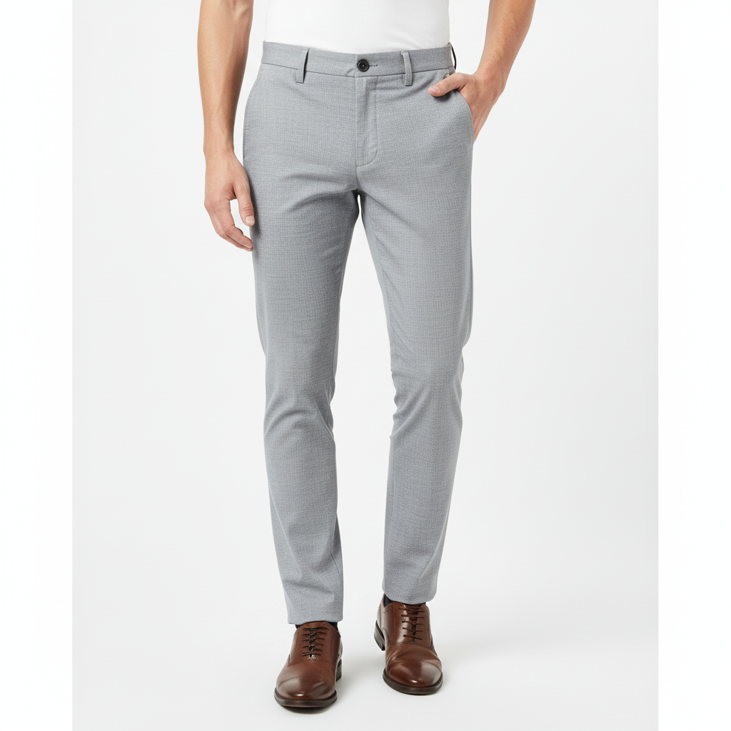 Sophisticated light grey slim-fit trousers with a soft textured finish — perfect for smart office wear or semi-formal occasions.