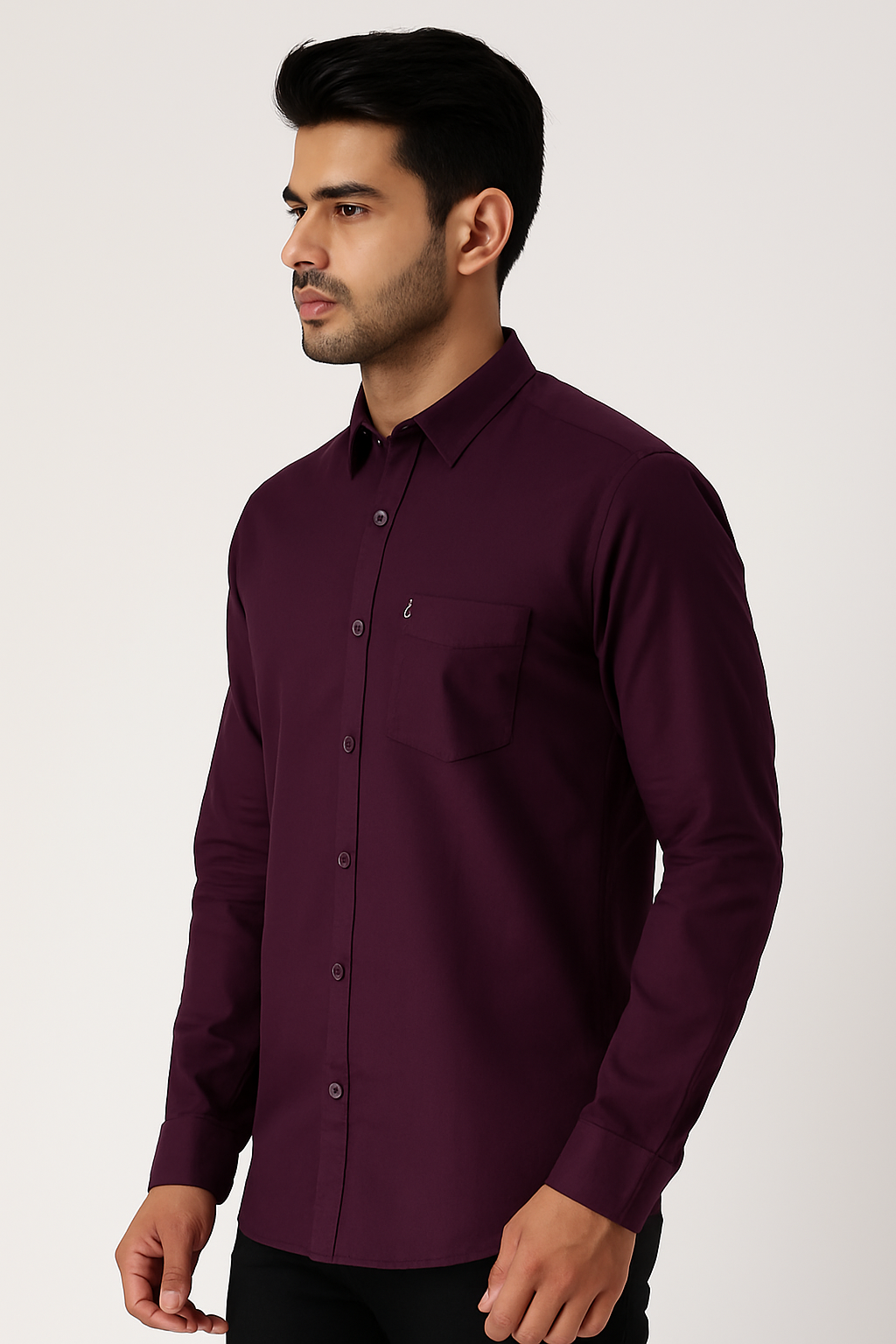 A stylish and comfortable slim-fit maroon shirt made from premium cotton, perfect for both formal and casual occasions.