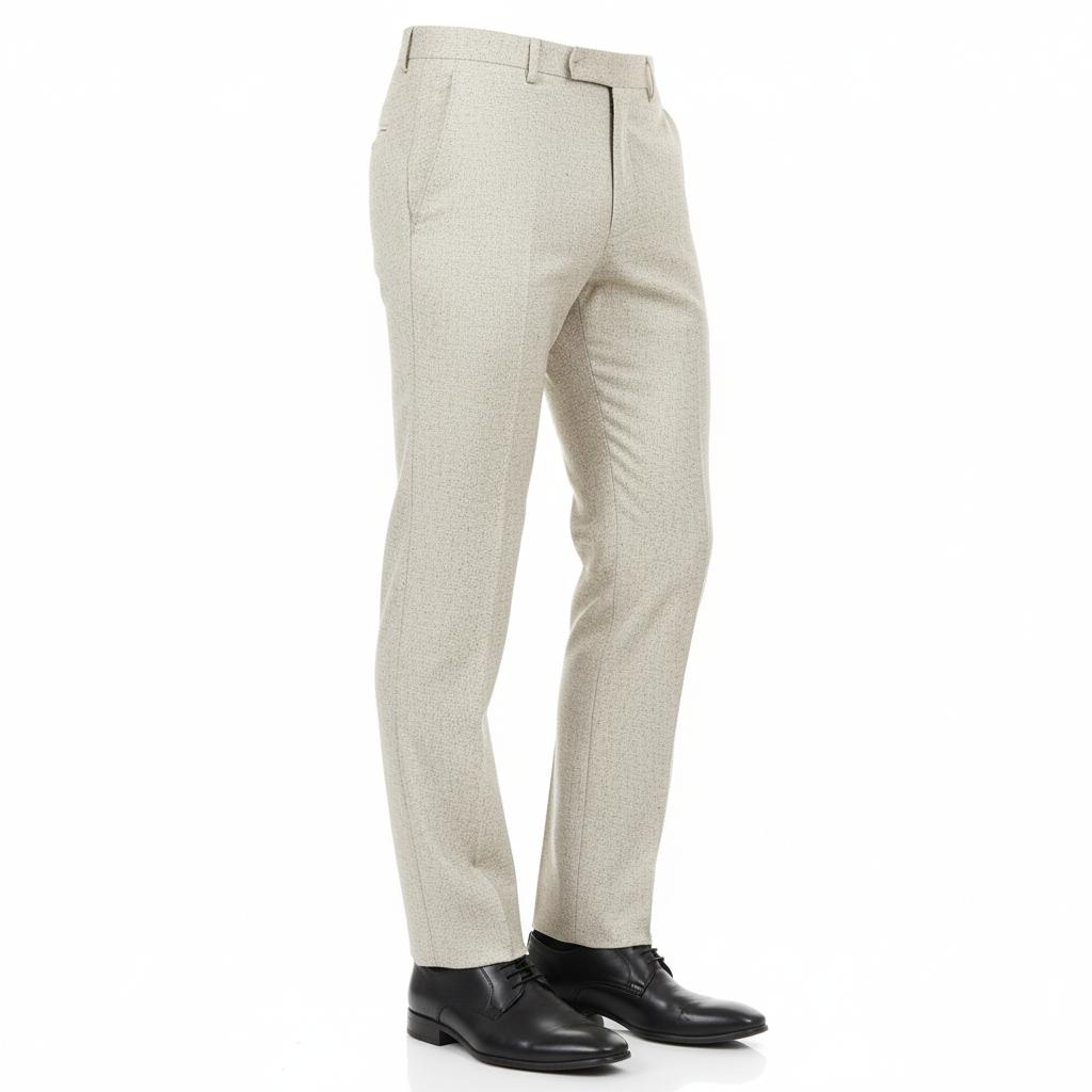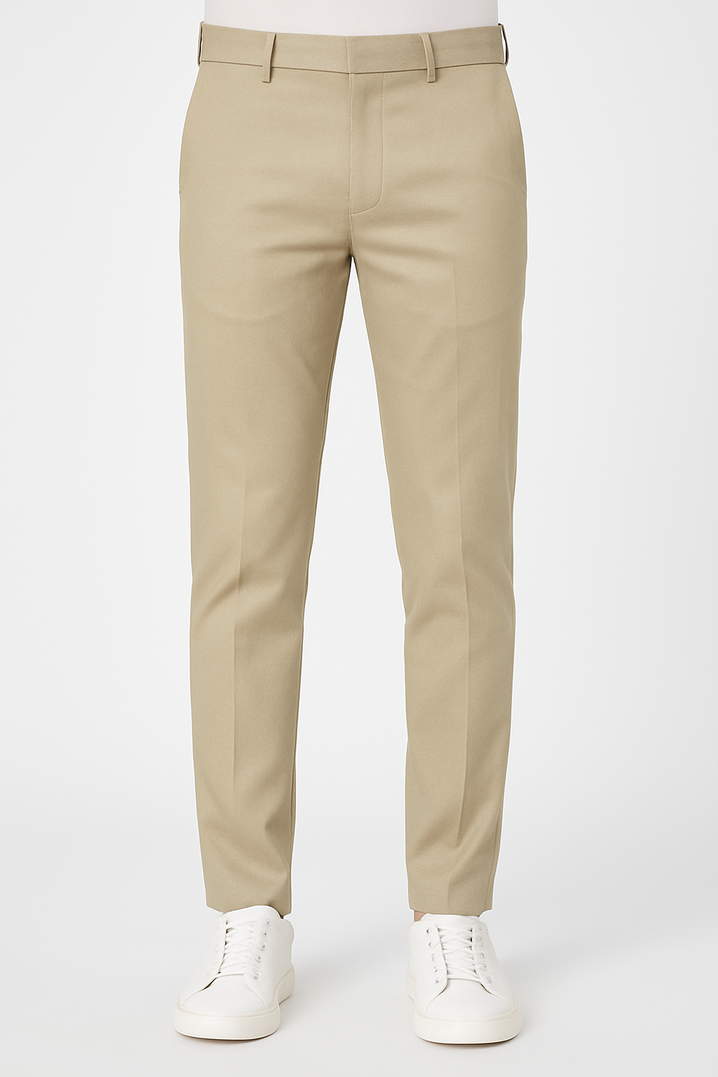 Beige slim-fit formal trousers with a tailored cut.