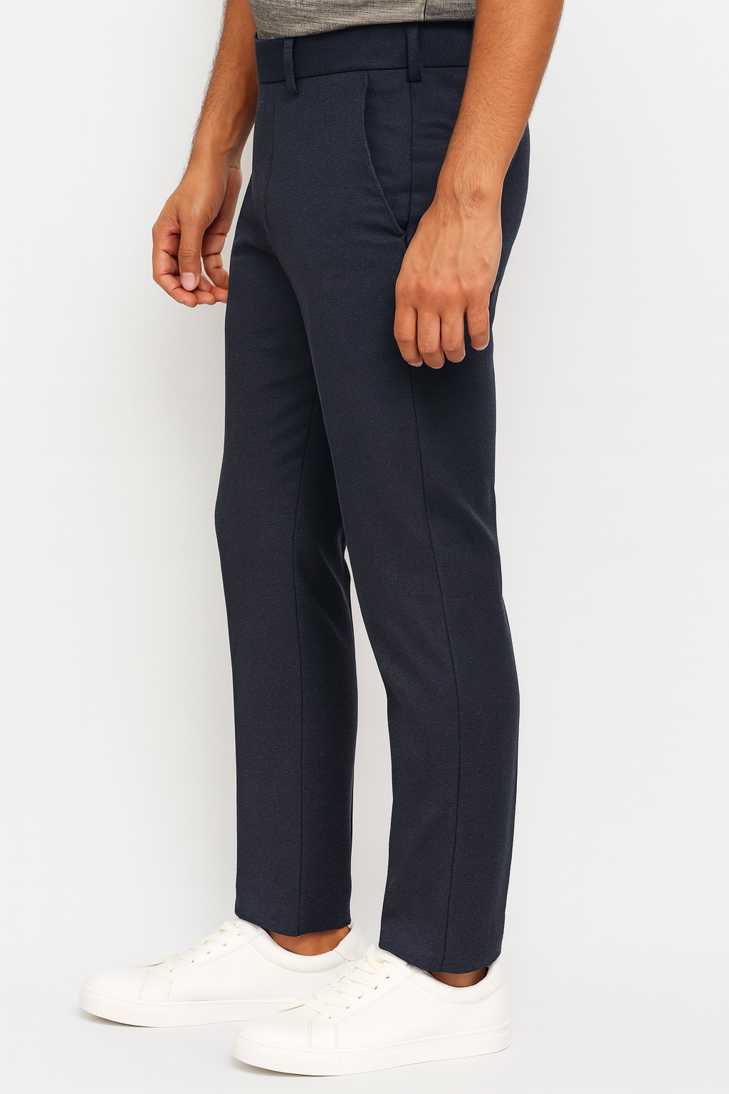 Sophisticated deep navy slim-fit trousers crafted for a modern professional look — perfect for office, meetings, and formal occasions.