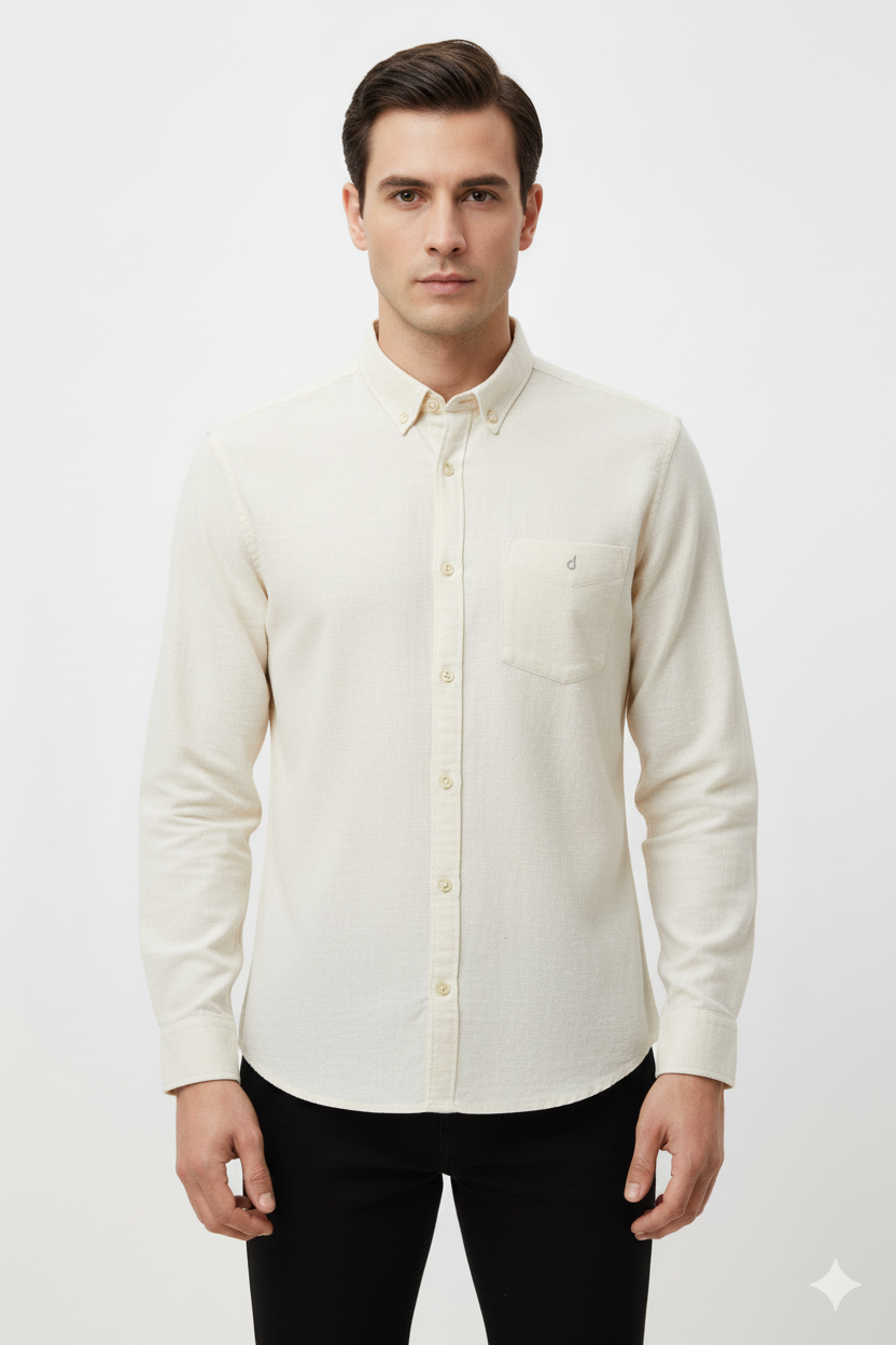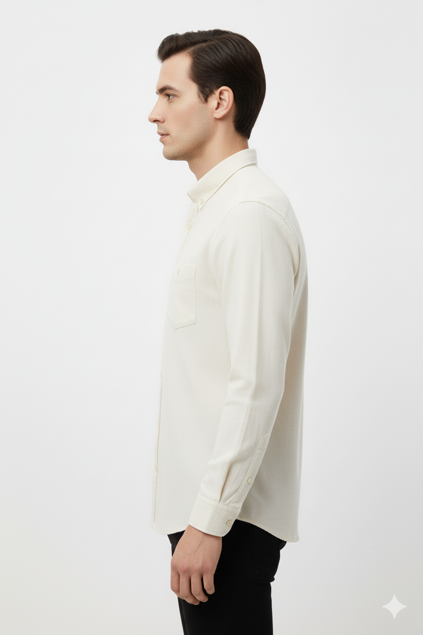 A timeless off-white cotton shirt offering classic elegance with superior comfort — perfect for both formal and casual wear.