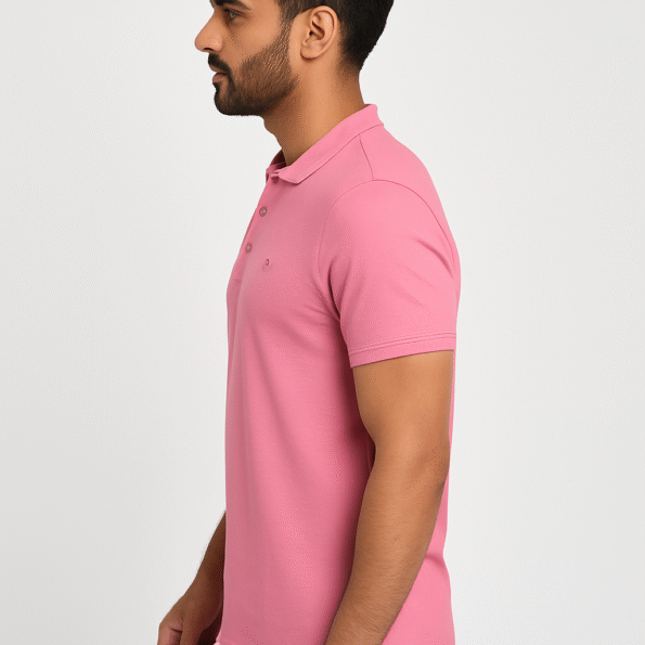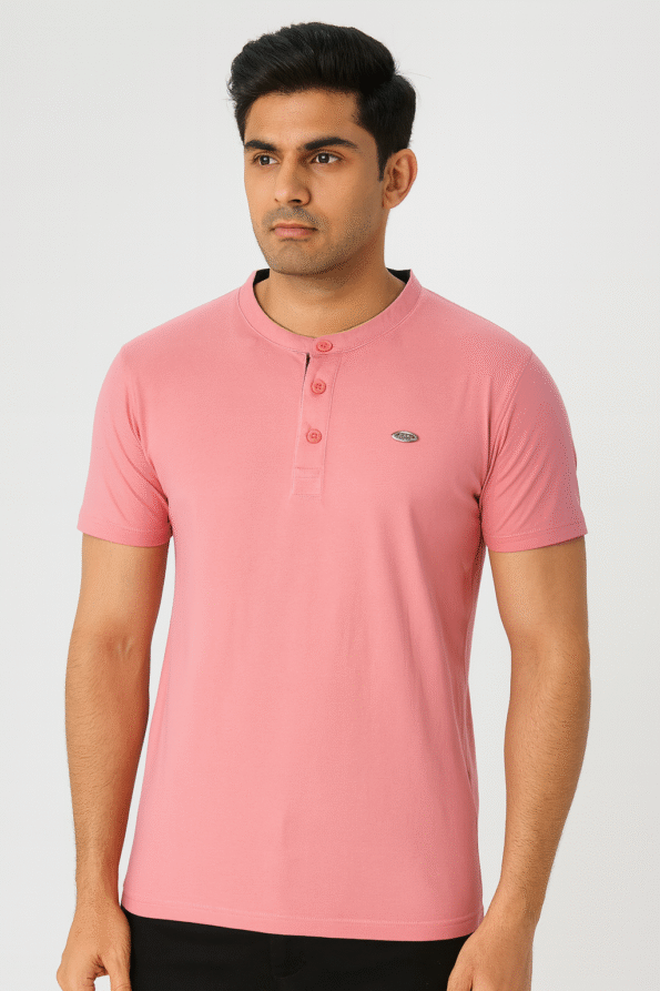 A soft pink Henley neck t-shirt designed for modern comfort and a stylish casual look — a perfect everyday essential.